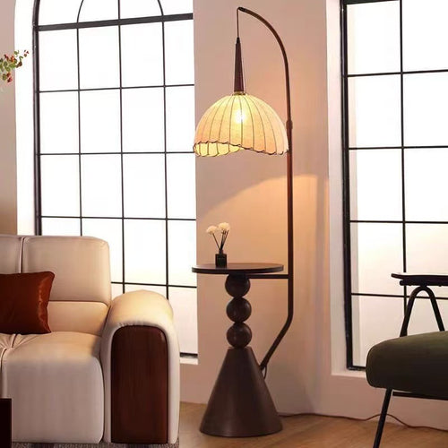 French wabi-sabi style floor lamp, popular online, vintage style, bedside shelf integrated lamp, creating a Zen-like atmosphere in the bedroom.